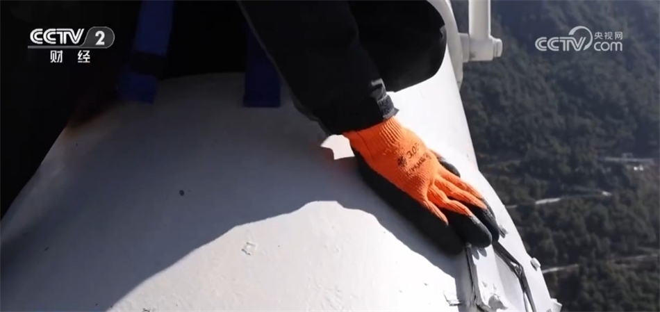 經(jīng)過30分鐘左右的攀爬,他們到達(dá)了整座大橋最高的位置,開始檢查鞍罩。鞍罩就是像馬鞍一樣的罩子,主要是為了保護(hù)邊跨和主跨的連接部位,鞍罩內(nèi)還裝有大橋健康檢測(cè)系統(tǒng)和除濕系統(tǒng),實(shí)時(shí)監(jiān)控大橋的健康狀態(tài)。