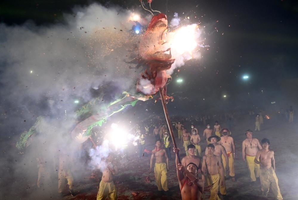 記者20日傍晚時(shí)分在賓陽縣看到,舞龍活動(dòng)正式開始。舞龍人有的頭戴藤帽、身著傳統(tǒng)的黃色舞龍服;有的則赤膊上陣,在鞭炮聲中勇敢地舞龍。