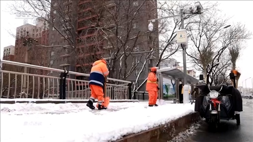 北京市環(huán)衛(wèi)集團城市機掃公司環(huán)路運營中心經(jīng)理李彬:“我們需要把融化掉的雪水,用清掃車把水坑吸干凈,防止夜間降溫以后二次結冰。減少對車輛通行的影響,我們會多一項清掃工藝,像其他路段背陰的地方,會有類似積冰、積雪、殘冰的情況,我們下一步的工作是把殘冰包括平臺上的積雪完全清理干凈?!?/p>