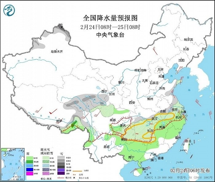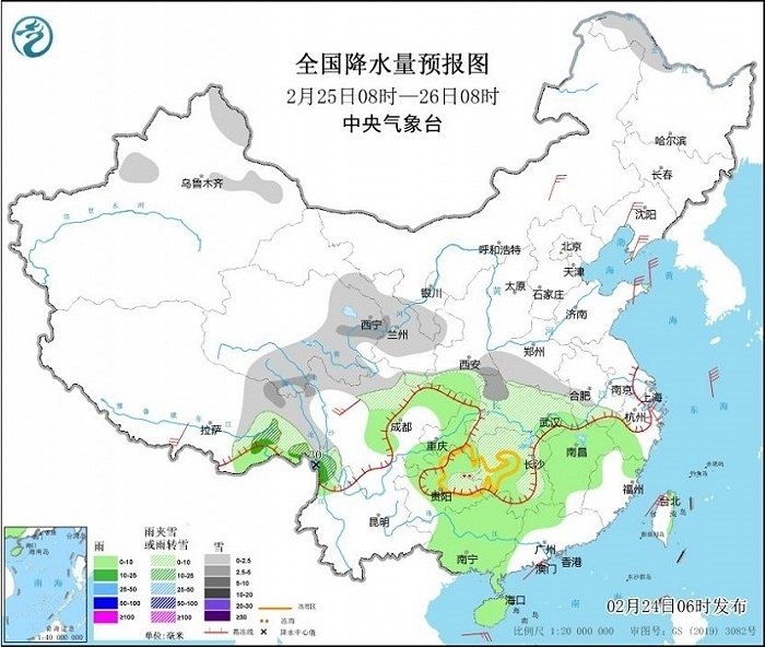 央視網(wǎng)消息:中央氣象臺(tái)網(wǎng)站2月24日消息,昨日,河南、安徽、四川等地部分地區(qū)出現(xiàn)了明顯的雨雪天氣,湖北、湖南及貴州部分地區(qū)出現(xiàn)凍雨。近期我國(guó)大部地區(qū)氣溫偏低,南方部分地區(qū)有雨雪冰凍天氣,公眾需持續(xù)做好防寒保暖,外出警惕雨雪冰凍天氣造成的路面濕滑,注意交通安全。