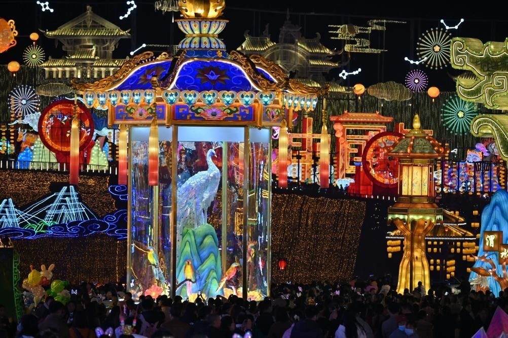 在四川自貢,3萬多名游客走進(jìn)“中國(guó)燈城”自貢中華彩燈大世界,觀彩燈、賞演藝、拍全家福??罩?,600架無人機(jī)排列出湯圓、舞龍燈等圖樣;地面,舞龍舞獅等民俗表演輪番上演,上百名身著漢服的演員手提花燈巡游……