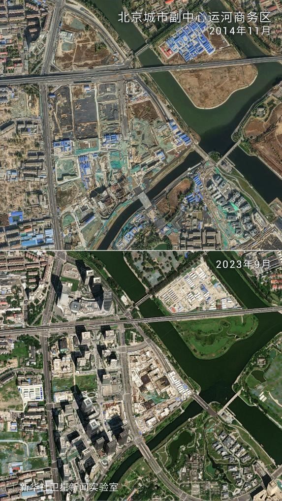 記者借助萬(wàn)米高空拍攝的衛(wèi)星圖片,展現(xiàn)了“千年之城”發(fā)展的十年蝶變?!?/p>