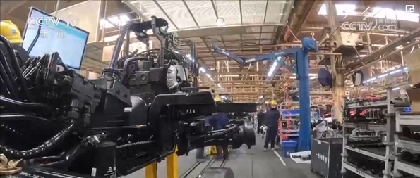 這是一個(gè)生產(chǎn)大拖拉機(jī)的農(nóng)機(jī)工廠,更是一個(gè)具備國(guó)際領(lǐng)先水平的現(xiàn)代數(shù)字化項(xiàng)目區(qū)。在傳統(tǒng)的產(chǎn)業(yè)工人身邊多了“數(shù)字工友”一起干活。