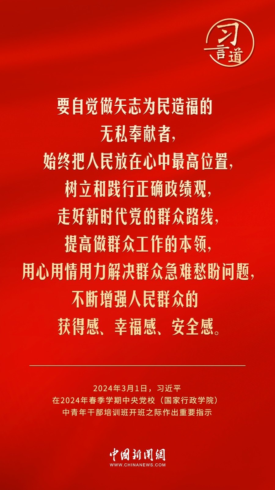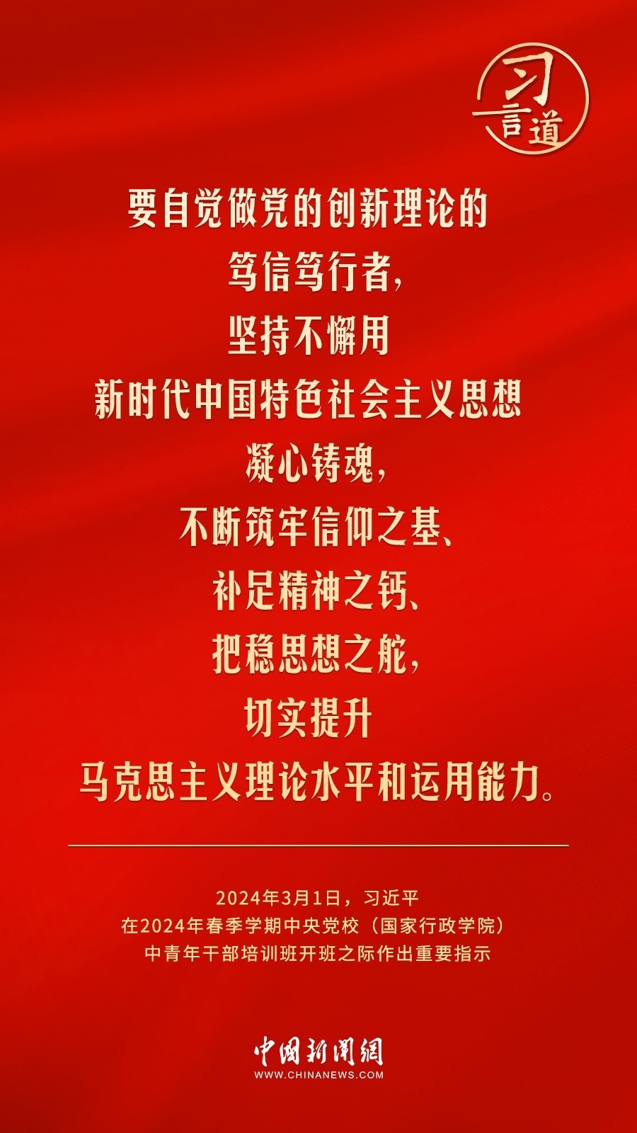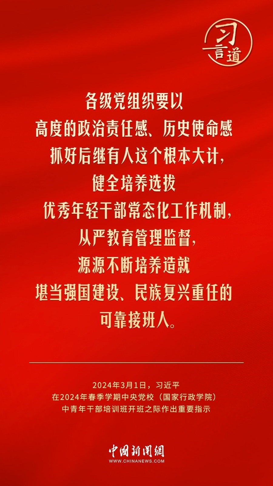 2024年春季學期中央黨校(國家行政學院)中青年干部培訓班3月1日上午在中央黨校開班。中共中央總書記、國家主席、中央軍委主席習近平作出重要指示,他強調(diào)——