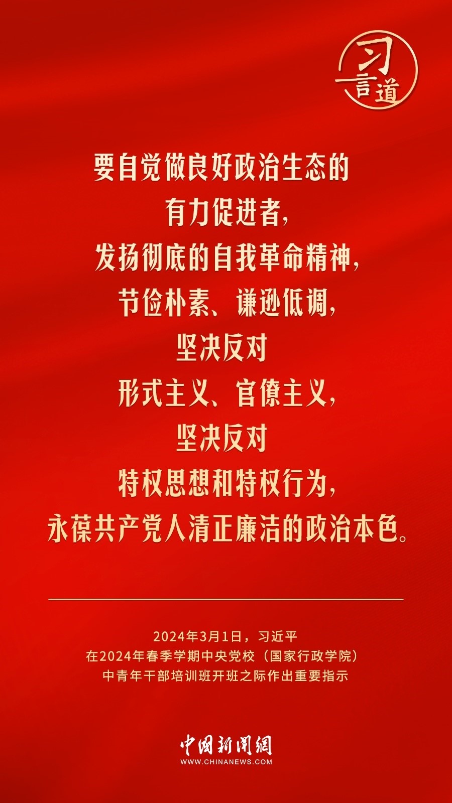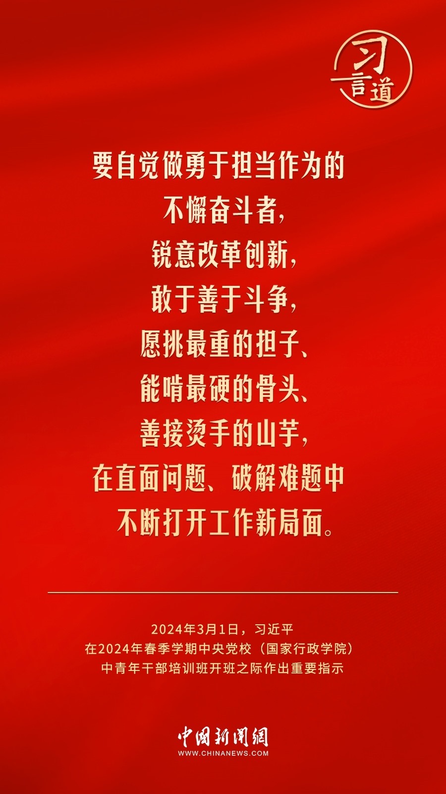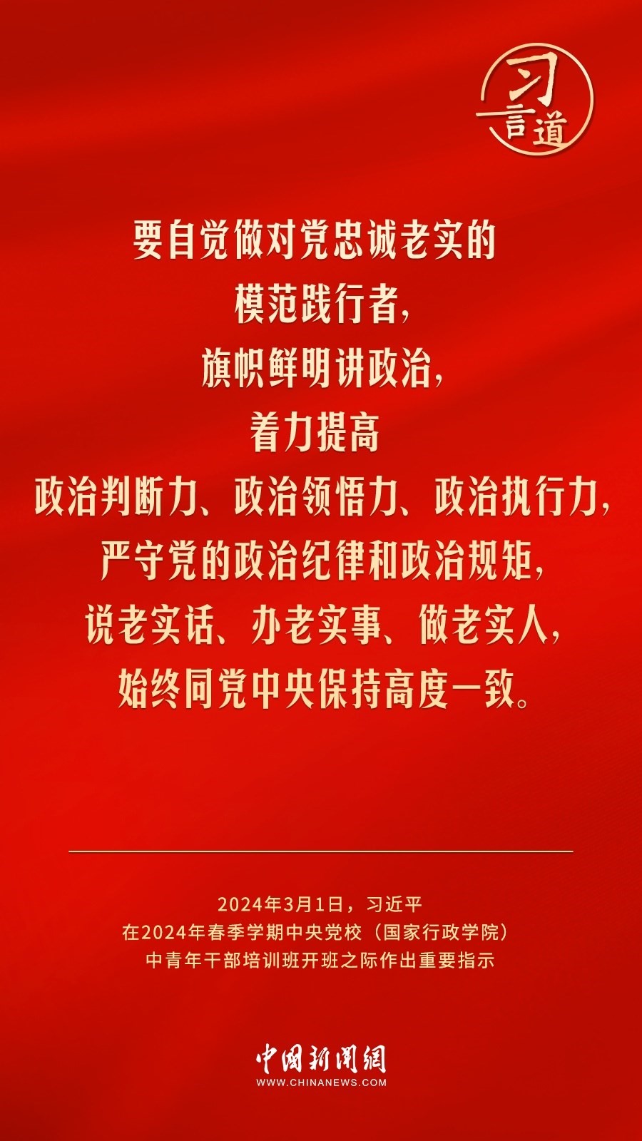 2024年春季學期中央黨校(國家行政學院)中青年干部培訓班3月1日上午在中央黨校開班。中共中央總書記、國家主席、中央軍委主席習近平作出重要指示,他強調(diào)——