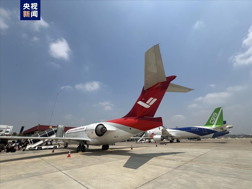 ·國產(chǎn)商用飛機(jī)C919及ARJ21首次飛抵柬埔寨。