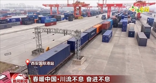 忙碌起來(lái)的不只是港口,西安國(guó)際港站汽笛聲聲、班列轟鳴,龍門吊正加緊作業(yè)。這輛滿載光伏設(shè)備和新能源汽車等貨物的中歐班列,預(yù)計(jì)9天后將抵達(dá)目的地——烏茲別克斯坦塔什干。在這里,平均每1小時(shí)40分鐘就有一列中歐班列出發(fā)或到達(dá)?!耙粠б宦贰苯ㄔO(shè)讓西部成為開放前沿,開放是一種理念、一條路,更是一種胸襟。?
