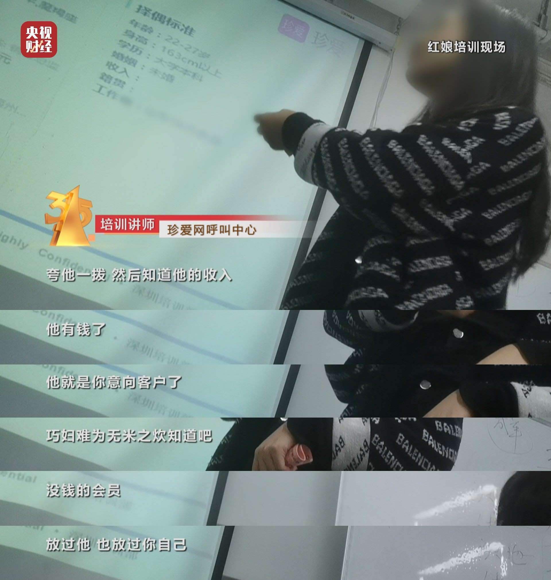 “虛擬人”誘餌如果吸引了客戶,就完成銷售的“第一步”。接下來的話術(shù),表面上是核實客戶資料,講師們要求紅娘的其實是篩選客戶有沒有錢。
