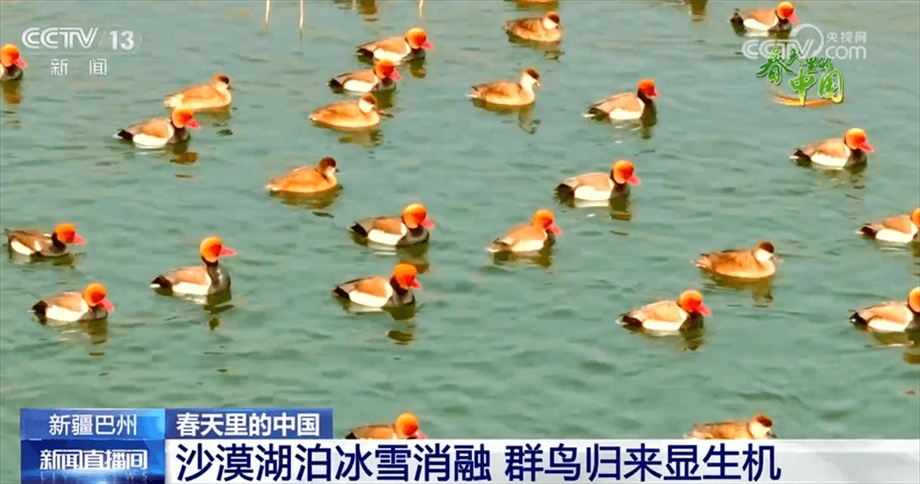 伴隨著陣陣鳥鳴,我們來到新疆巴州尉犁縣羅布淖爾國家濕地公園,碧綠的水面上,成群結(jié)隊的赤嘴潛鴨、赤麻鴨等鳥類時而用翅膀拍打水面展翅飛翔,時而三五成群在水中喜戲、覓食,群鳥與黃沙、碧水、葦叢、胡楊交相輝映,形成一幅生機勃勃的春日畫卷。
