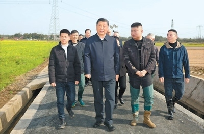 湖南是全國(guó)13個(gè)糧食主產(chǎn)省之一,水稻播種面積、總產(chǎn)量均居全國(guó)第一。當(dāng)天下午,習(xí)近平來到常德市鼎城區(qū)謝家鋪鎮(zhèn)港中坪村,走進(jìn)當(dāng)?shù)丶Z食生產(chǎn)萬畝綜合示范片區(qū),察看秧苗培育和春耕備耕進(jìn)展,聽取高質(zhì)量推進(jìn)農(nóng)業(yè)現(xiàn)代化情況介紹,并同種糧大戶、農(nóng)技人員、基層干部一筆一筆算投入產(chǎn)出賬。習(xí)近平強(qiáng)調(diào),我國(guó)有14億多人口,糧食安全必須靠我們自己保證,中國(guó)人的飯碗應(yīng)該主要裝中國(guó)糧。要建設(shè)好高標(biāo)準(zhǔn)農(nóng)田,推行適度規(guī)模經(jīng)營(yíng),加強(qiáng)政策支持和示范引領(lǐng),加大良種、良機(jī)、良法推廣力度,在精耕細(xì)作上下功夫,進(jìn)一步把糧食單產(chǎn)和品質(zhì)提上去,讓種糧也能夠致富,進(jìn)而吸引更多農(nóng)戶參與發(fā)展現(xiàn)代化大農(nóng)業(yè),真正把中國(guó)特色農(nóng)業(yè)現(xiàn)代化之路走穩(wěn)走扎實(shí)。