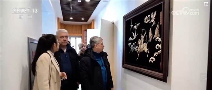 在同江,非物質(zhì)文化遺產(chǎn)魚皮手工藝品也受到俄羅斯游客的喜愛。赫哲族用魚皮制作的手工藝品精美、大氣、寓意美好,展現(xiàn)了中國少數(shù)民族的獨特文化魅力。游客斯維特拉娜當(dāng)場選購了一幅魚皮畫,準(zhǔn)備帶回俄羅斯。