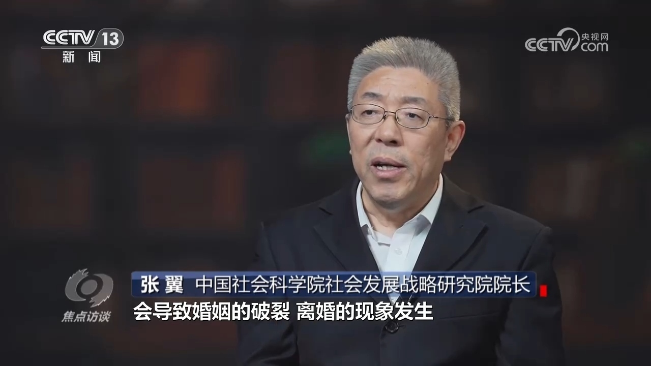 中國社科院社會發(fā)展戰(zhàn)略研究院院長張翼:“增加夫妻雙方的矛盾以后,會導(dǎo)致婚姻破裂、離婚現(xiàn)象發(fā)生,導(dǎo)致離婚率居高不下;第二,往往導(dǎo)致兩個親家之間互不往來,原來存在的家庭網(wǎng)斷裂了。”?