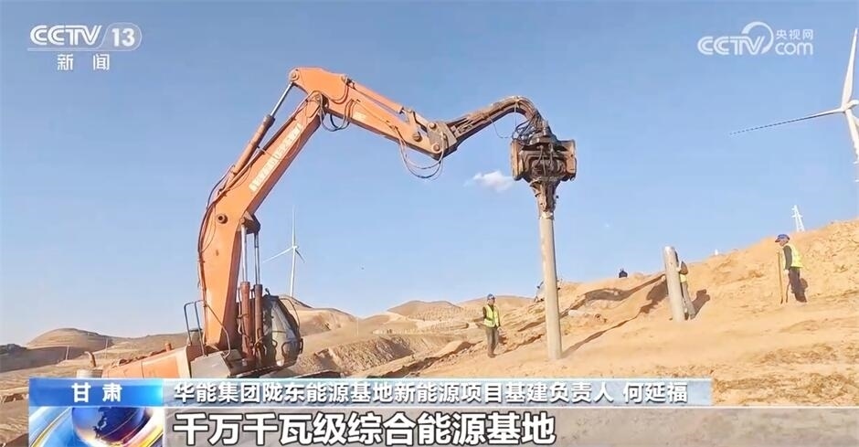 在我國首個千萬千瓦級多能互補綜合能源基地——華能隴東能源基地,施工現(xiàn)場一片繁忙景象。目前,基地已建成投產(chǎn)100萬千瓦容量,在建500萬千瓦容量。