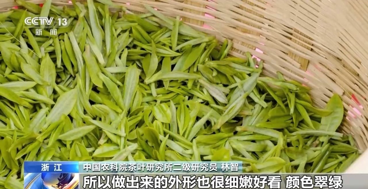 中國農(nóng)科院茶葉研究所二級(jí)研究員 林智:所以它有幾個(gè)特點(diǎn),第一個(gè)就是好看,為什么說好看呢,因?yàn)榇禾觳璧难咳~比較細(xì)嫩,所以也比較金貴,做工一般都比較講究,做出來的外形也很細(xì)嫩好看,顏色翠綠。