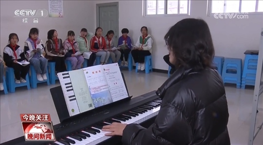去年9月,由于普海玲工作調(diào)動離開了九溪鎮(zhèn),同樣是音樂專業(yè)畢業(yè),此前一直在合唱團做志愿者的姐姐普海蘭接過了接力棒。今年3月,她指揮孩子們演唱的玉溪版《螃蟹歌》火遍全網(wǎng)。童聲配方言,念白配唱曲,讓無數(shù)網(wǎng)友夢回童年。