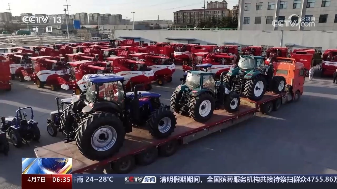 山東濰坊是我國(guó)重要的農(nóng)機(jī)產(chǎn)業(yè)基地,記者在當(dāng)?shù)匾患肄r(nóng)機(jī)龍頭生產(chǎn)企業(yè)看到,一臺(tái)臺(tái)智能化、大馬力農(nóng)機(jī)具,正在裝車轉(zhuǎn)運(yùn)發(fā)往全國(guó)各地。
