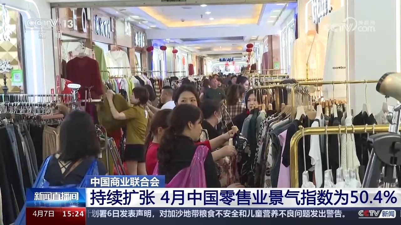 央視網(wǎng)消息:中國(guó)商業(yè)聯(lián)合會(huì)最新發(fā)布的中國(guó)零售業(yè)景氣指數(shù)顯示,4月份,中國(guó)零售業(yè)景氣指數(shù)為50.4%,連續(xù)一年維持在擴(kuò)張區(qū)間。全國(guó)商品經(jīng)營(yíng)類企業(yè)對(duì)4月份盈利增長(zhǎng)恢復(fù)的預(yù)期開(kāi)始好轉(zhuǎn)。