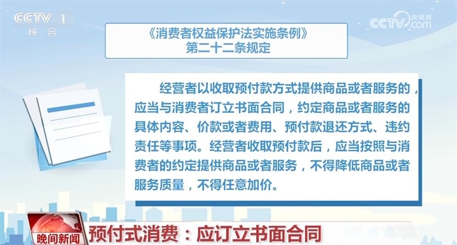 《消費(fèi)者權(quán)益保護(hù)法實施條例》第二十二條規(guī)定,經(jīng)營者以收取預(yù)付款方式提供商品或者服務(wù)的,應(yīng)當(dāng)與消費(fèi)者訂立書面合同,約定商品或者服務(wù)的具體內(nèi)容、價款或者費(fèi)用、預(yù)付款退還方式、違約責(zé)任等事項。經(jīng)營者收取預(yù)付款后,應(yīng)當(dāng)按照與消費(fèi)者的約定,提供商品或者服務(wù),不得降低商品或者服務(wù)質(zhì)量,不得任意加價。