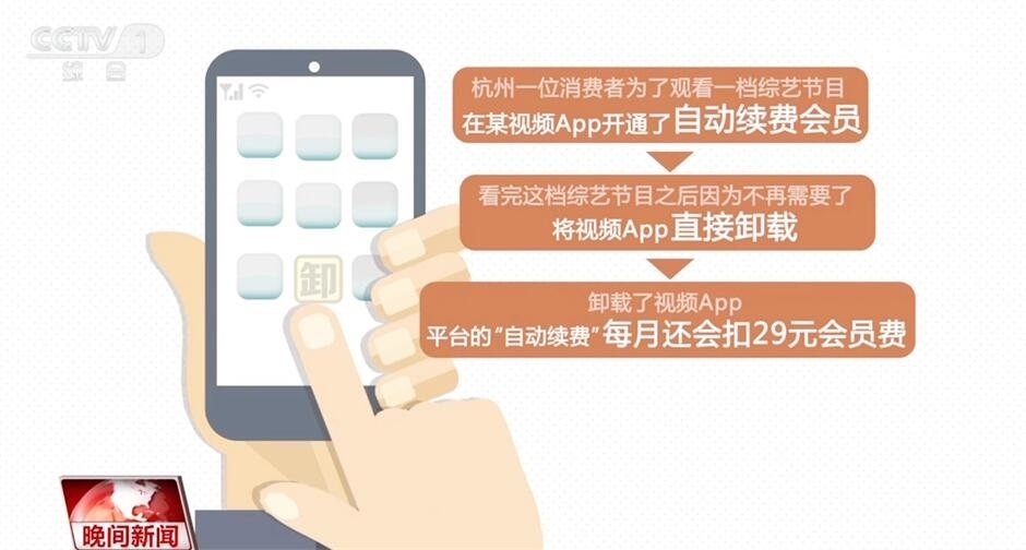 杭州一位消費(fèi)者為了觀看一檔綜藝節(jié)目,在一家視頻App開通了自動續(xù)費(fèi)會員,之后便直接將視頻App卸載。然而,平臺的“自動續(xù)費(fèi)”并沒有終止,每月會費(fèi)照扣。