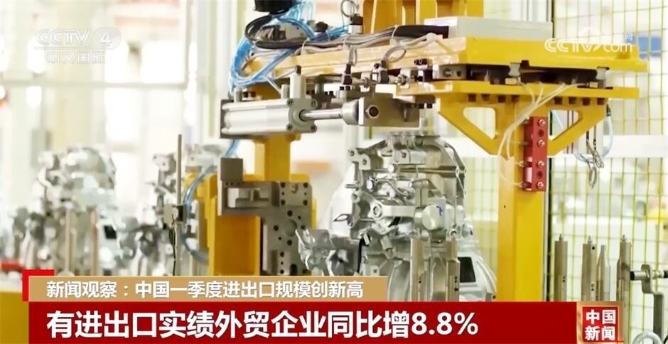 央視網(wǎng)消息:在4月12日下午舉行的國新辦新聞發(fā)布會(huì)上,海關(guān)總署相關(guān)負(fù)責(zé)人介紹,今年一季度,中國貨物貿(mào)易進(jìn)出口規(guī)模歷史同期首次突破10萬億元,進(jìn)出口增速創(chuàng)6個(gè)季度以來新高,外貿(mào)發(fā)展質(zhì)量穩(wěn)步提升。