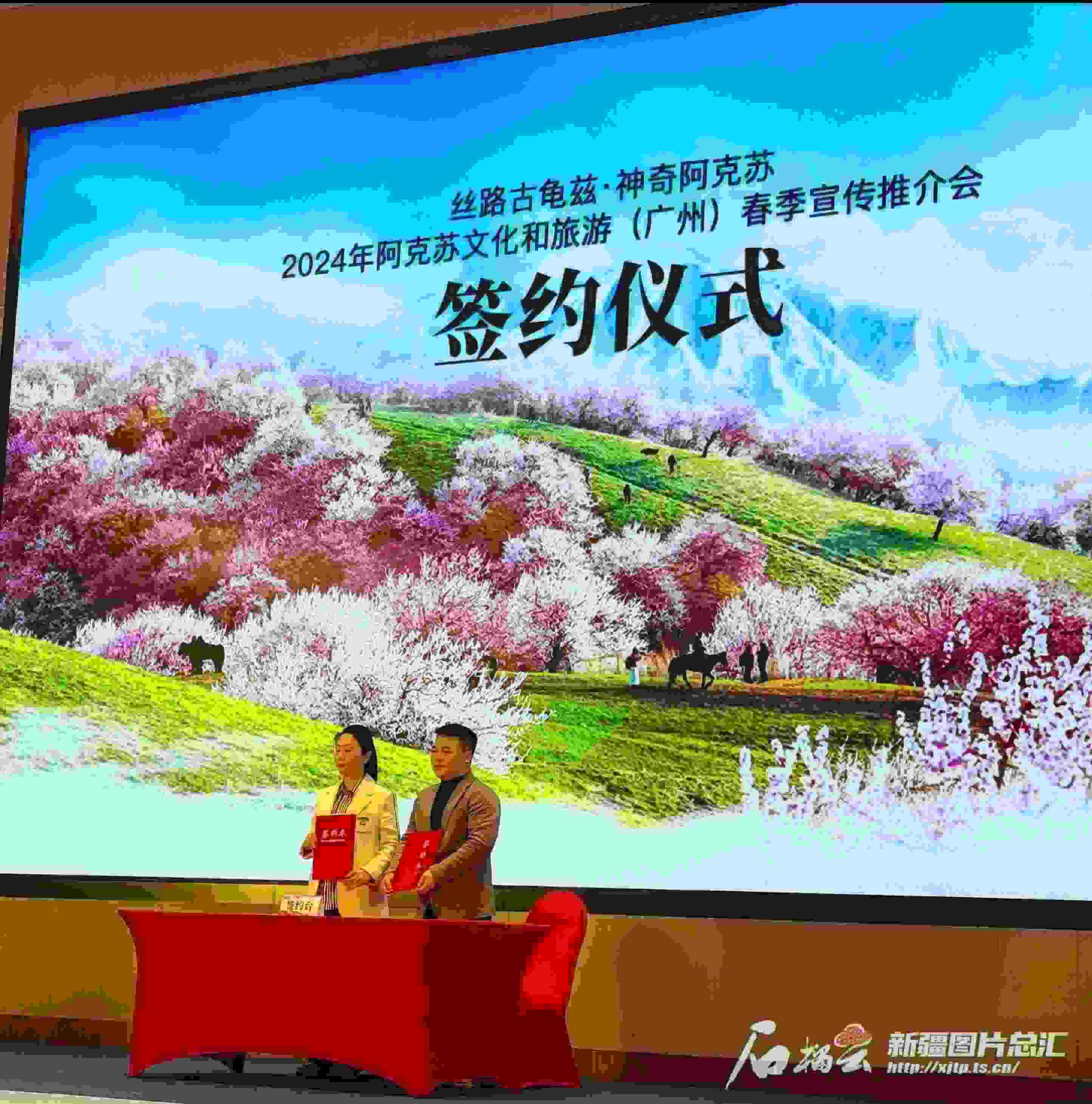 阿克蘇地區(qū)旅游企業(yè)與廣東旅游企業(yè)簽訂合作協(xié)議。阿克蘇地區(qū)文化體育廣播電視和旅游局供圖