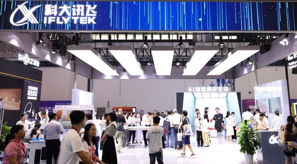 這是4月14日拍攝的第四屆消博會(huì)上的科大訊飛展臺(tái)。新華社記者 楊冠宇 攝