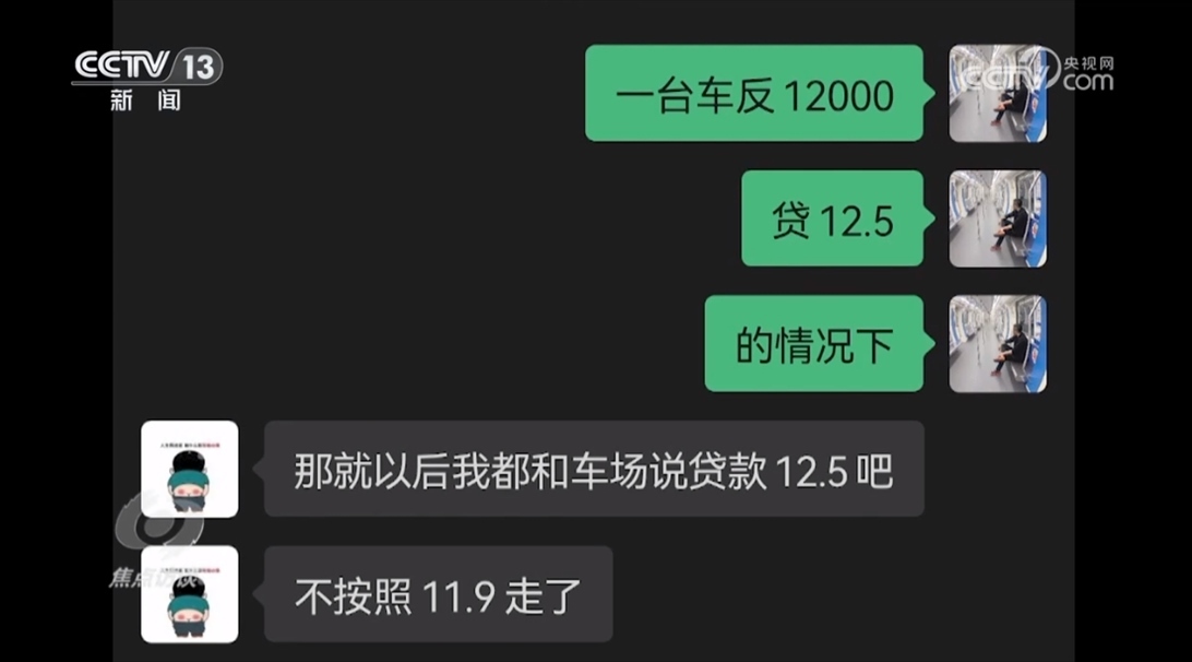 所謂物流公司內(nèi)部的一段聊天記錄顯示,一位司機(jī)購買的一臺車,物流公司的人和貸款公司一起運(yùn)作,把原本應(yīng)該是11.9萬元的貸款總額提高到12.5萬元,物流公司人員從中可以獲取12000元的返利。
