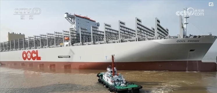 央視網(wǎng)消息:5月7日,又一艘全球最大裝箱量級(jí)的集裝箱船在海事部門(mén)的護(hù)航下,從長(zhǎng)江江蘇南通段出江試航。此次,試航集裝箱船長(zhǎng)399.99米、寬61.3米,滿載時(shí)相當(dāng)于240多列火車的裝載量。