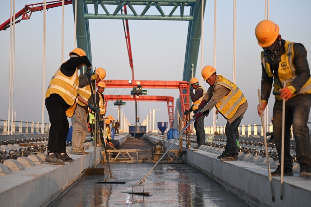 2024年3月20日,中鐵三局建設(shè)者在滬蘇湖鐵路東苕溪特大橋上施工。滬蘇湖鐵路起自上海虹橋站,途經(jīng)江蘇省蘇州市,終至浙江省湖州市湖州站。項(xiàng)目建成運(yùn)營后,將進(jìn)一步完善區(qū)域路網(wǎng)布局,促進(jìn)沿線經(jīng)濟(jì)社會(huì)發(fā)展和長(zhǎng)三角一體化高質(zhì)量發(fā)展。新華社記者 黃宗治 攝