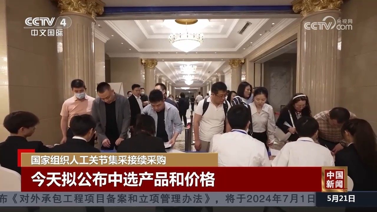 5月21日,國家組織人工關節(jié)集中帶量采購協(xié)議期滿接續(xù)采購在天津進行,企業(yè)遞交了申報材料,并現(xiàn)場開標。擬中選產(chǎn)品和價格將于21日下午公布。