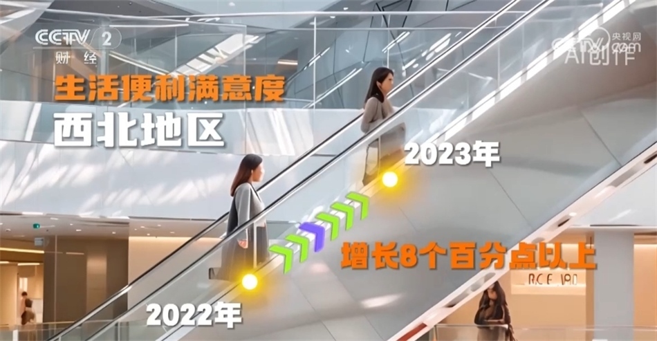 生活便利方面的滿(mǎn)意度較前一年增長(zhǎng)了6個(gè)百分點(diǎn)。華南地區(qū)滿(mǎn)意度最高;西北地區(qū)增長(zhǎng)幅度最大,達(dá)到了8個(gè)百分點(diǎn)以上。