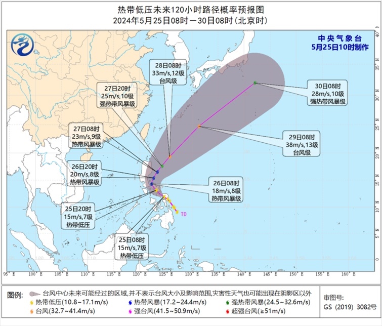 預(yù)計,低壓中心將以每小時15至20公里的速度向西北方向移動,強(qiáng)度緩慢增強(qiáng),將于未來24小時內(nèi)加強(qiáng)為今年第1號臺風(fēng),26至27日將在菲律賓呂宋島東部海面逐漸轉(zhuǎn)向東北方向移動。