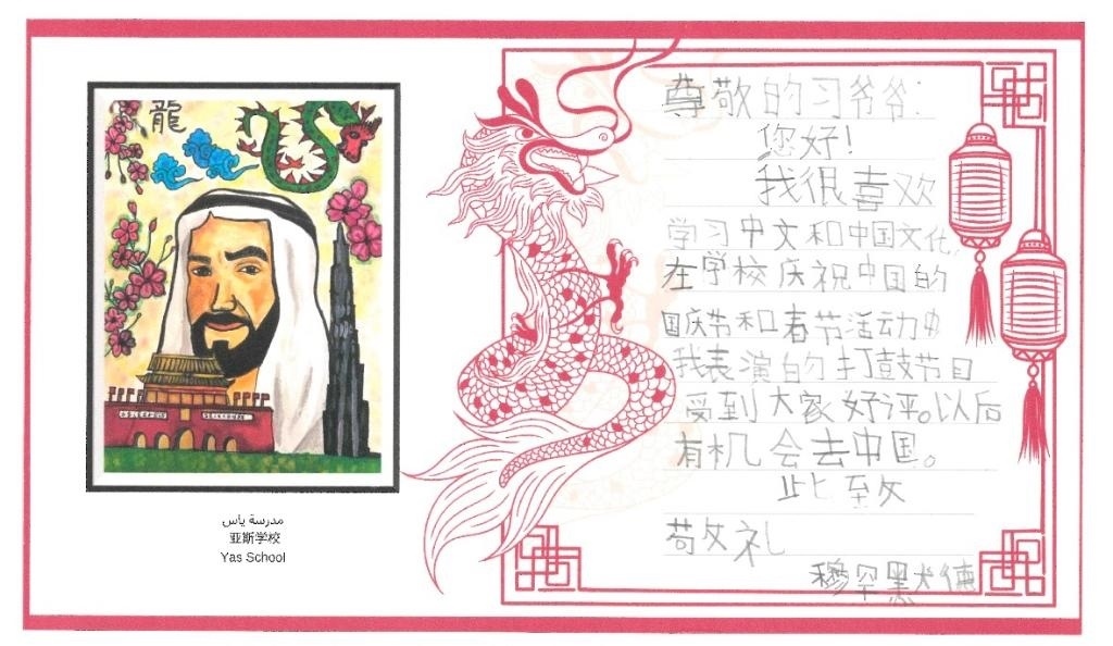 今年是中國(guó)同阿聯(lián)酋建交40周年?!鞍傩m?xiàng)目”已正式啟動(dòng)實(shí)施5年。日前,阿聯(lián)酋“百校項(xiàng)目”示范校哈姆丹·本·扎耶德學(xué)校(簡(jiǎn)稱(chēng)哈姆丹學(xué)校)和亞斯學(xué)校40名中小學(xué)生代表分別用中文致信習(xí)近平主席,表達(dá)對(duì)中國(guó)文化的向往和熱愛(ài),立志做阿中友好的使者。