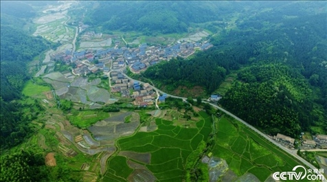 江西新余渝水區(qū)良山鎮(zhèn)黃虎村,青山、田園、道路、村庒相映成趣,構(gòu)成了一幅美麗的山村圖畫。