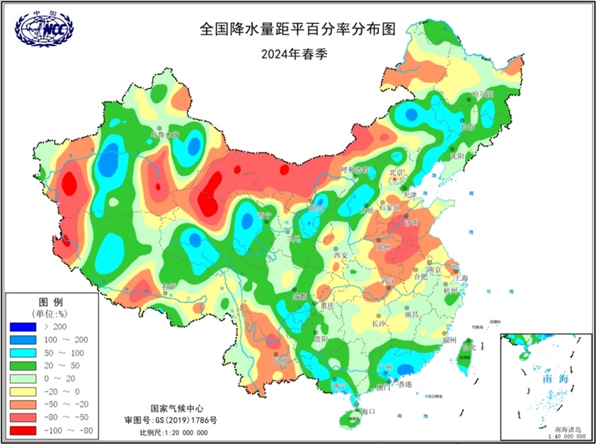 央視網(wǎng)消息:2024年春季,全國氣候總體呈現(xiàn)暖濕特征。平均氣溫為歷史同期最高,南方多站日最高氣溫達到或超過歷史極值;北方冷空氣次數(shù)偏多,氣溫波動起伏大。全國降水量總體偏多,但空間分布不均。14次區(qū)域暴雨過程襲擊我國,較常年同期明顯偏多;南方強對流天氣頻發(fā),局地影響重;西南地區(qū)出現(xiàn)冬春連旱,進入5月后緩解;4月以來,黃淮江淮地區(qū)氣象干旱露頭并發(fā)展,目前仍存在中度及以上等級氣象干旱;春季,西北太平洋及南海共生成兩個臺風,生成數(shù)量接近常年同期,無臺風登陸我國。
