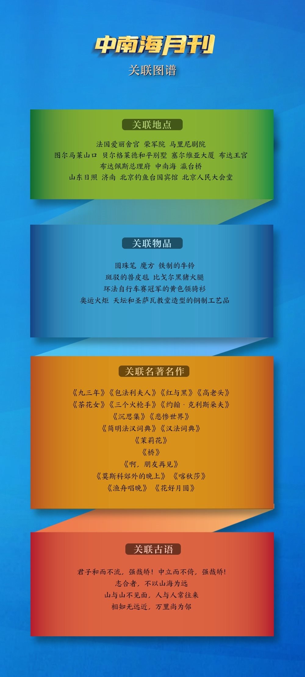 文明如水,為全球發(fā)展提供精神滋養(yǎng)。透過央視網(wǎng)“I學(xué)習(xí)”數(shù)據(jù)庫(kù)生成的關(guān)聯(lián)圖譜,一個(gè)個(gè)關(guān)聯(lián)地點(diǎn)、關(guān)聯(lián)物品、關(guān)聯(lián)名著名作等勾勒出清晰鮮明的文明互鑒印記。