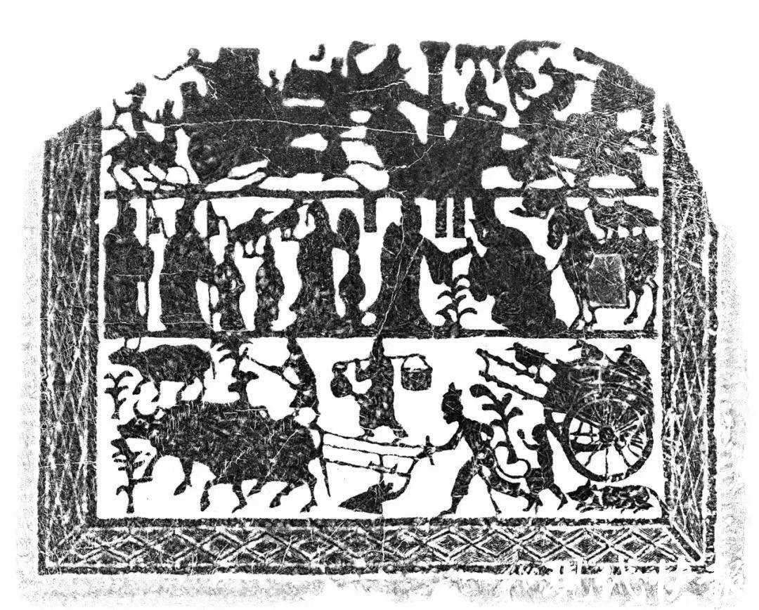 △漢畫像石《牛耕圖》拓片 徐州漢畫像石藝術館藏