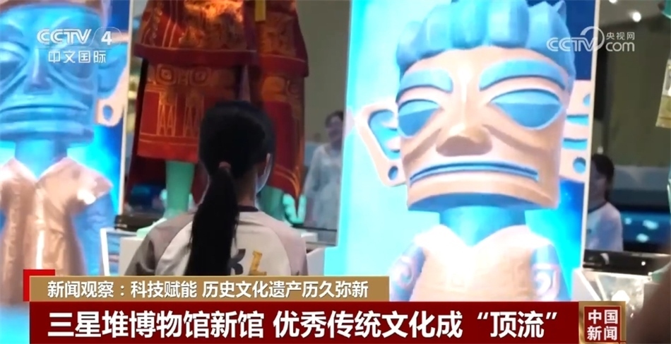 廣漢三星堆博物館副館長余健介紹:“通過各種沉浸式、數(shù)字化的方式,讓收藏在博物館里的文物‘活’起來,把中華文明起源發(fā)展的歷程生動(dòng)展現(xiàn)出來。讓人們從數(shù)千年沉淀的中華文化基因中獲取精神力量,增強(qiáng)文化自信?!?/p>