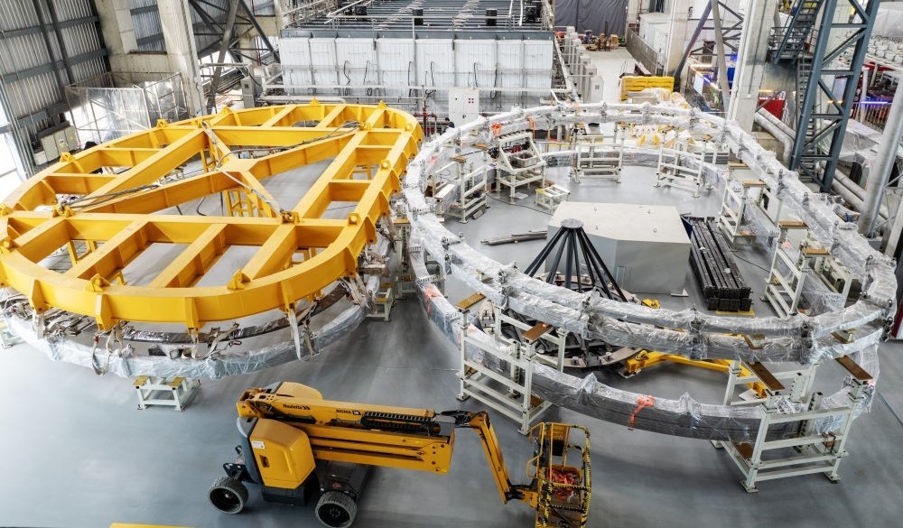 2024年5月27日在聚變堆主機關(guān)鍵系統(tǒng)綜合研究設(shè)施(CRAFT)園區(qū)內(nèi)拍攝的TF超導線圈生產(chǎn)線(無人機照片)。該研究設(shè)施將為未來中國聚變實驗堆、工程堆的設(shè)計建設(shè),搭建參數(shù)高、性能全、功能完備的綜合性研究及測試平臺。