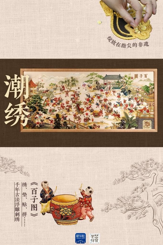 潮繡,屬我國(guó)四大名繡中的粵繡門(mén)派,最大的特點(diǎn)是立體墊高,以繡藝精美細(xì)致、構(gòu)圖均衡飽滿著稱(chēng),色彩亮麗又具立體感。