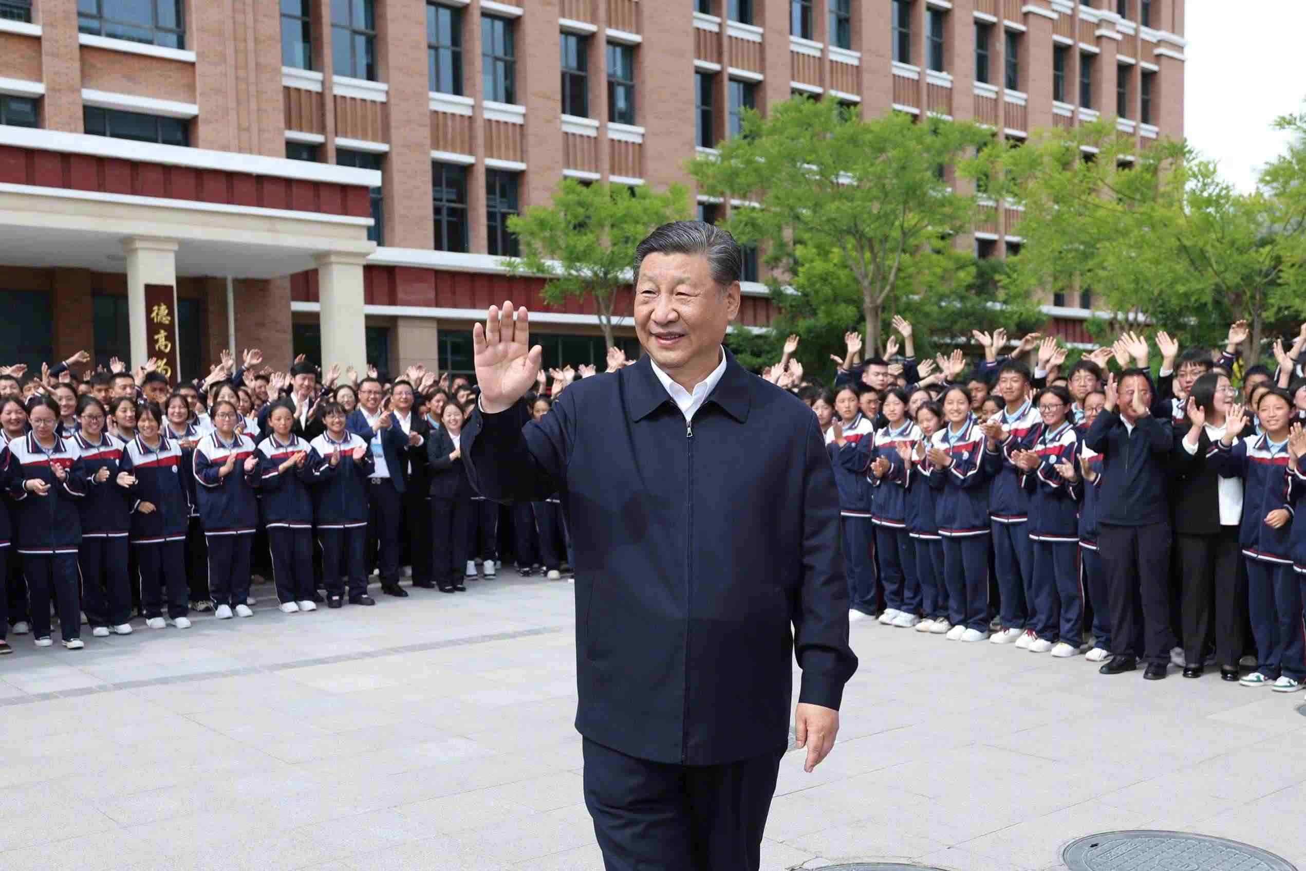 2024年6月18日下午,在青??疾煺{(diào)研的習(xí)近平總書記來到果洛西寧民族中學(xué),了解當(dāng)?shù)厣钊胪七M(jìn)教育工作東西部協(xié)作和對(duì)口支援等情況。