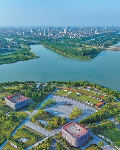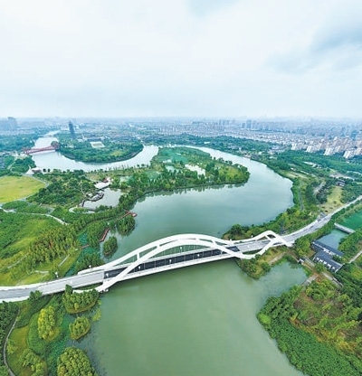 生態(tài)保護(hù)揚(yáng)州三河六岸公園遠(yuǎn)景。本報(bào)記者 雷 聲攝