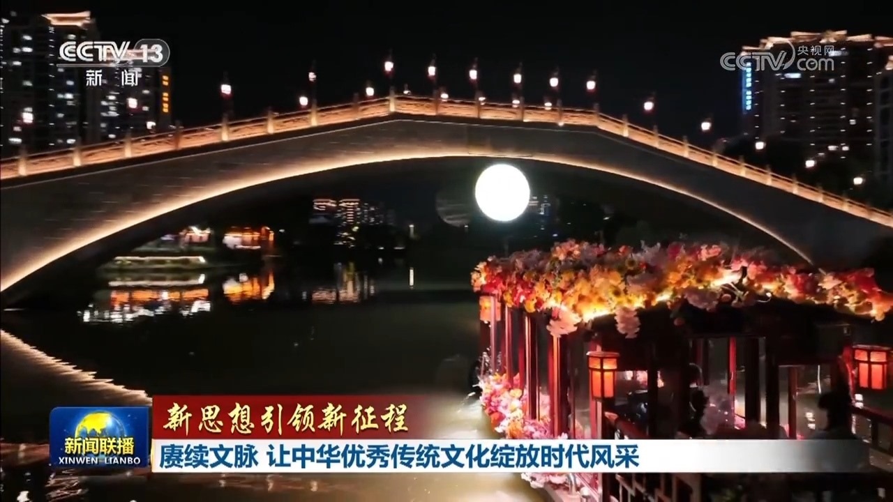 央視網(wǎng)消息(新聞聯(lián)播):悠悠天宇曠,切切故鄉(xiāng)情。作為中華民族的傳統(tǒng)節(jié)日,中秋節(jié)寄托著人們對闔家團圓的美好期許,也承載著濃濃的家國情懷,是傳承弘揚中華優(yōu)秀傳統(tǒng)文化的重要載體。習近平總書記指出:“泱泱中華,歷史悠久,文明博大。中華民族在幾千年歷史中創(chuàng)造和延續(xù)的中華優(yōu)秀傳統(tǒng)文化,是中華民族的根和魂?!秉h的十八大以來,習近平總書記站在中華民族和中華文明永續(xù)傳承的戰(zhàn)略高度,引領推動中華優(yōu)秀傳統(tǒng)文化創(chuàng)造性轉(zhuǎn)化、創(chuàng)新性發(fā)展,在新時代綻放新風采。