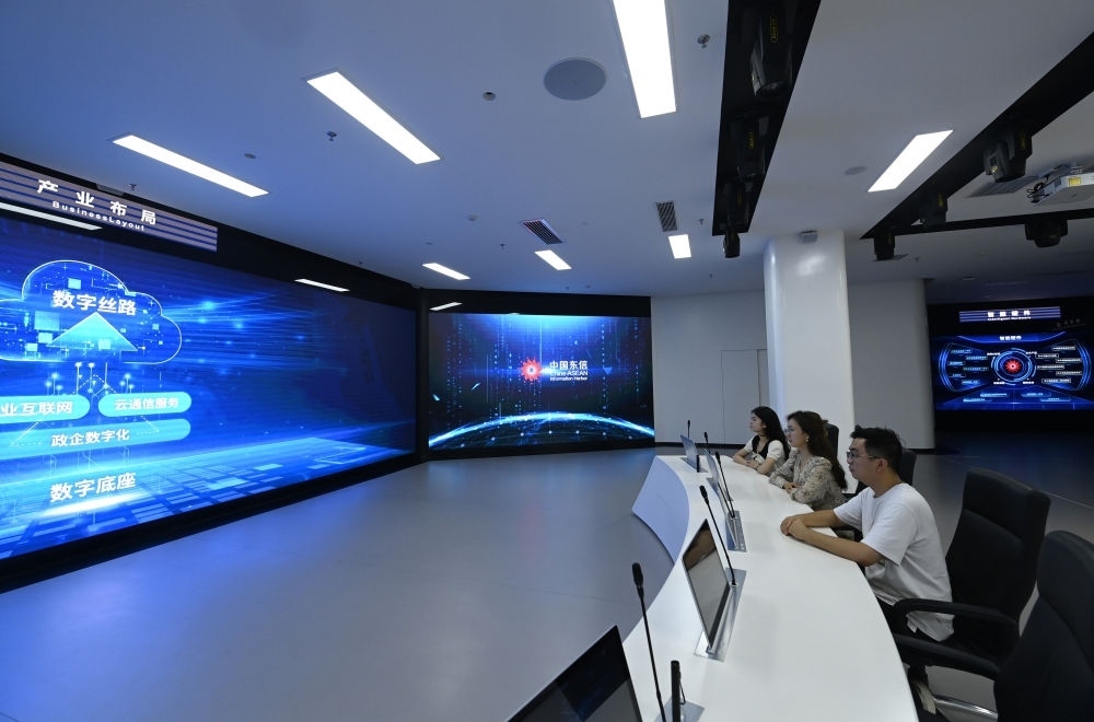 2023年12月12日拍攝的中國-東盟信息港股份有限公司內(nèi)景。歷經(jīng)多年建設(shè),中國-東盟信息港正努力打造面向東盟的國際通信大通道、大數(shù)據(jù)資源應用服務大樞紐、新一代信息技術(shù)應用示范高地、數(shù)字經(jīng)濟開放合作集聚區(qū)和人文交流合作中心。