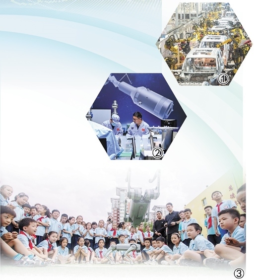 圖①:湖北武漢經(jīng)開(kāi)區(qū)的嵐圖汽車(chē)電動(dòng)化焊裝車(chē)間,機(jī)器人正在流水線上作業(yè)。 新華社記者 肖藝九攝 圖②:中國(guó)科學(xué)院空間光學(xué)系統(tǒng)在軌制造與集成重點(diǎn)實(shí)驗(yàn)室的科研人員在進(jìn)行科研工作。 新華社記者 許 暢攝 圖③:河北邯鄲市復(fù)興區(qū)前進(jìn)小學(xué)的學(xué)生們?cè)谟^看機(jī)器狗表演。聶長(zhǎng)青攝(人民視覺(jué))