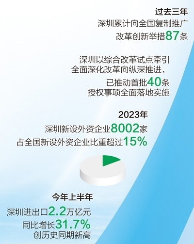改革開(kāi)放釋放澎湃動(dòng)能。深圳發(fā)布支持外商投資生物醫(yī)藥領(lǐng)域、實(shí)施跨境貿(mào)易投資高水平開(kāi)放政策試點(diǎn)等20條措施,出臺(tái)優(yōu)化國(guó)際化營(yíng)商環(huán)境工作方案,持續(xù)提升對(duì)全球優(yōu)質(zhì)要素資源的強(qiáng)大吸引力。去年全年,深圳新設(shè)外資企業(yè)8002家,占全國(guó)新設(shè)外資企業(yè)比重超過(guò)15%;今年上半年,深圳進(jìn)出口總額2.2萬(wàn)億元,同比增長(zhǎng)31.7%,創(chuàng)深圳歷史同期新高。