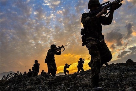 ▲ “強(qiáng)軍精武紅四連”官兵在陌生地域開(kāi)展戰(zhàn)場(chǎng)搜索訓(xùn)練。