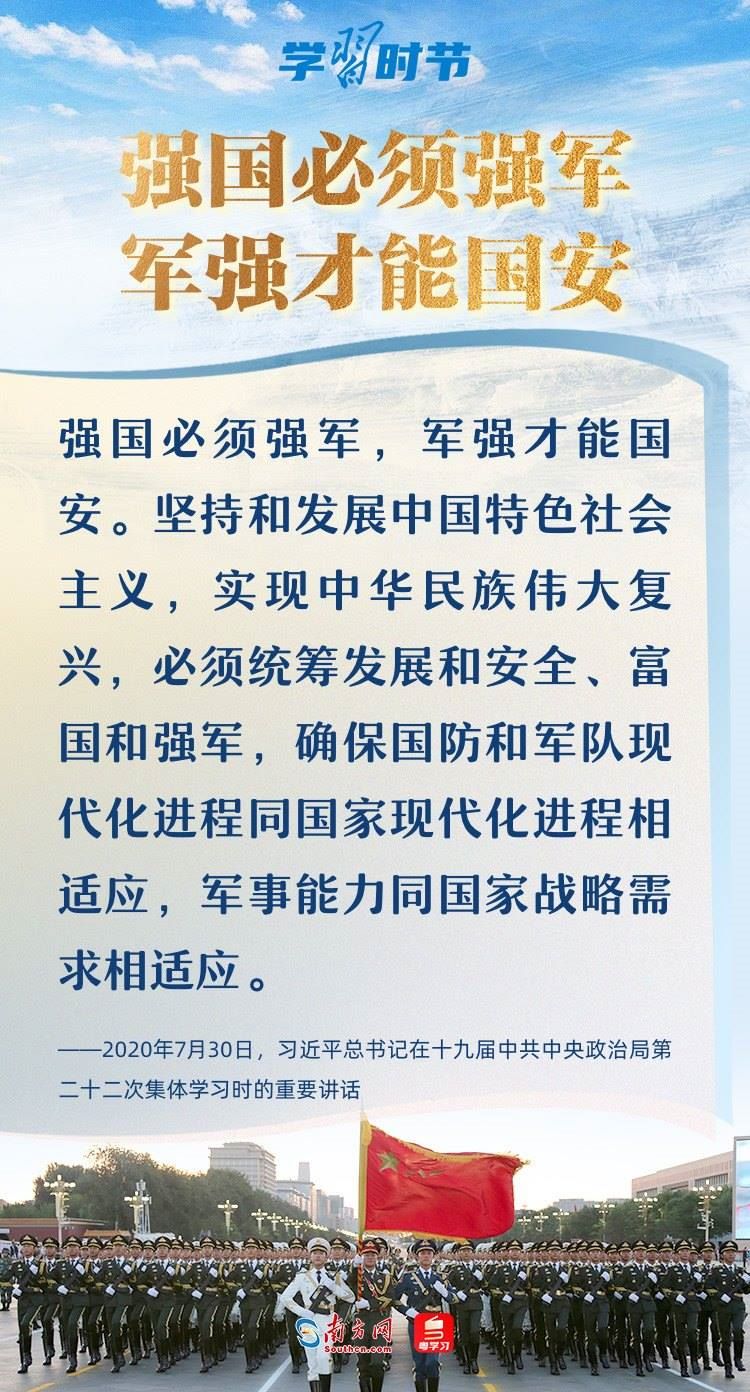 強(qiáng)國(guó)必須強(qiáng)軍,軍強(qiáng)才能國(guó)安。黨的十八大以來(lái),以習(xí)近平同志為核心的黨中央領(lǐng)導(dǎo)軍隊(duì)和國(guó)防建設(shè),開(kāi)啟強(qiáng)軍興軍新征程,形成了習(xí)近平強(qiáng)軍思想,指引人民軍隊(duì)朝著實(shí)現(xiàn)新時(shí)代強(qiáng)軍目標(biāo)、全面建成世界一流軍隊(duì)奮勇前行。在八一建軍節(jié)到來(lái)之際,讓我們一起回顧總書記那些振奮人心的強(qiáng)軍話語(yǔ)。