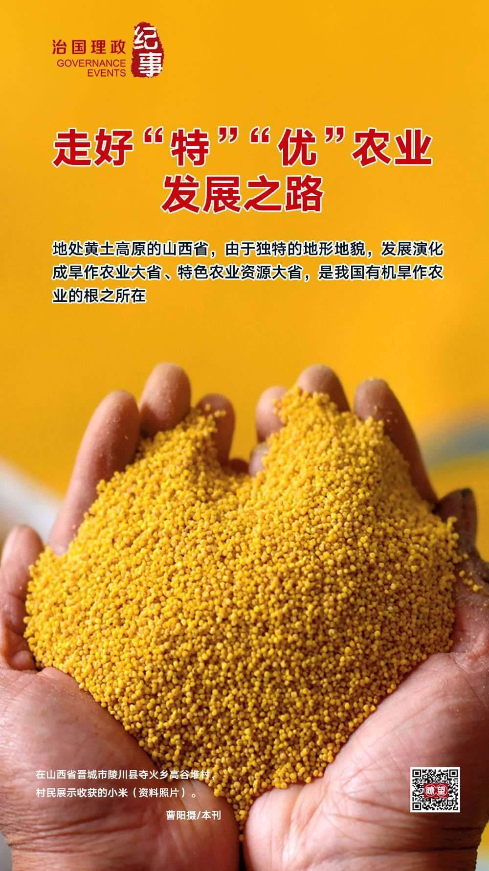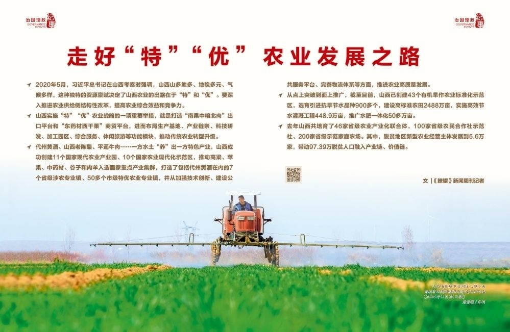 ◇2020年5月,習(xí)近平總書記在山西考察時(shí)強(qiáng)調(diào),山西山多地多、地貌多元、氣候多樣,這種獨(dú)特的資源稟賦決定了山西農(nóng)業(yè)的出路在于“特”和“優(yōu)”。要深入推進(jìn)農(nóng)業(yè)供給側(cè)結(jié)構(gòu)性改革,提高農(nóng)業(yè)綜合效益和競爭力。