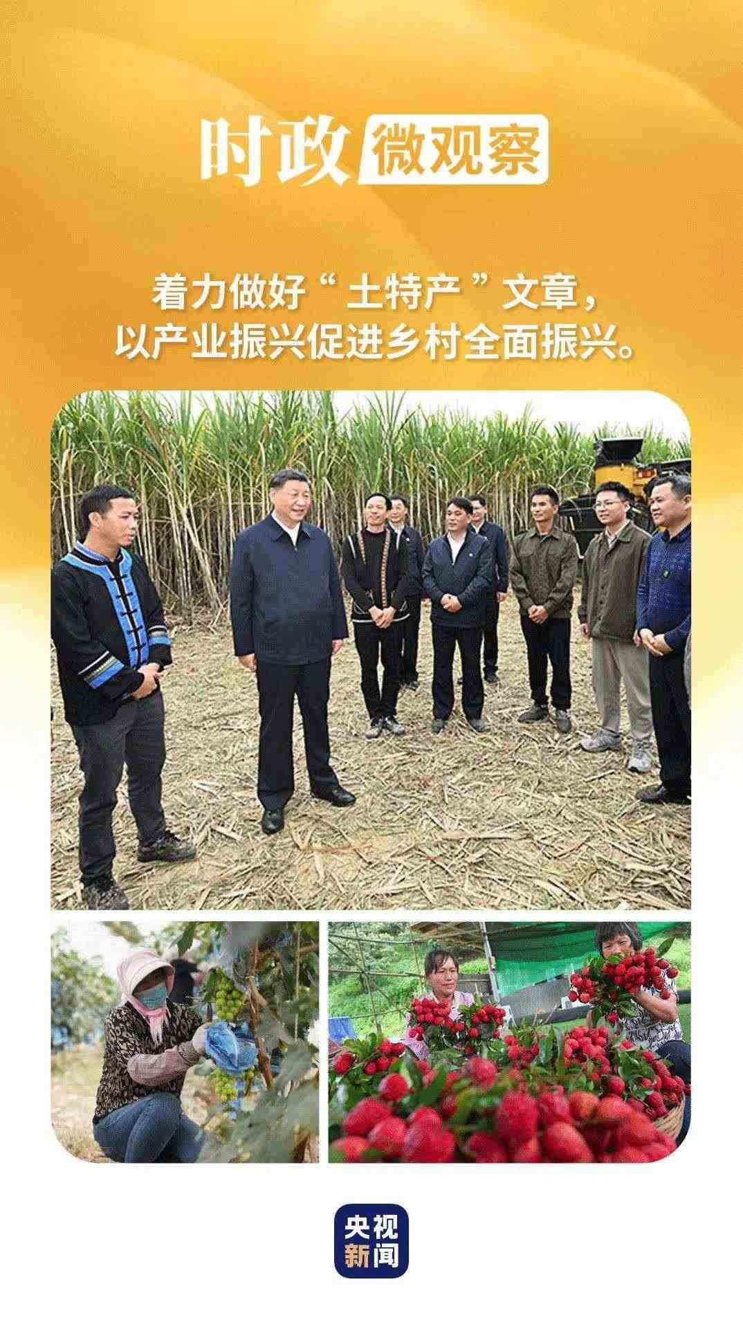 習近平總書記強調(diào),要著力做好“土特產(chǎn)”文章,以產(chǎn)業(yè)振興促進鄉(xiāng)村全面振興。在地方考察時,他多次來到大棚里、田埂上、果樹間、農(nóng)舍前,為特色產(chǎn)業(yè)謀思路、為農(nóng)民致富找門路。